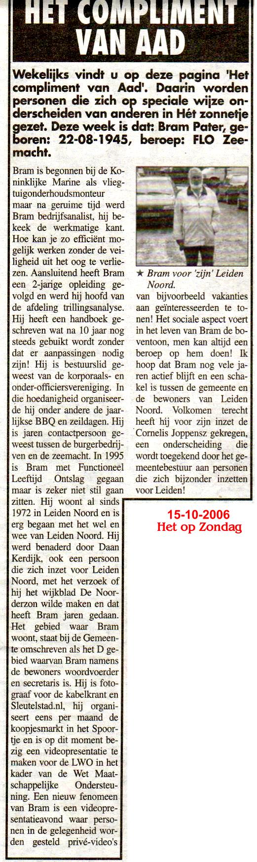 "Aad", een BL-er (belangrijke Leidenaar), is Aad van der Luit die elke week een persoon in het zonnetje zet.